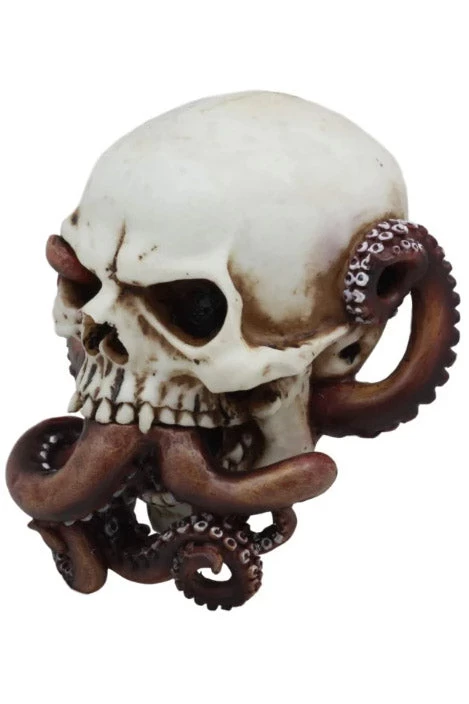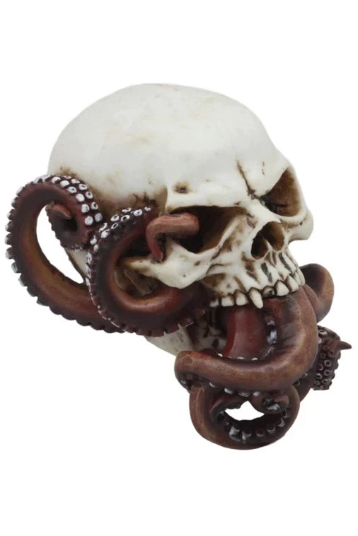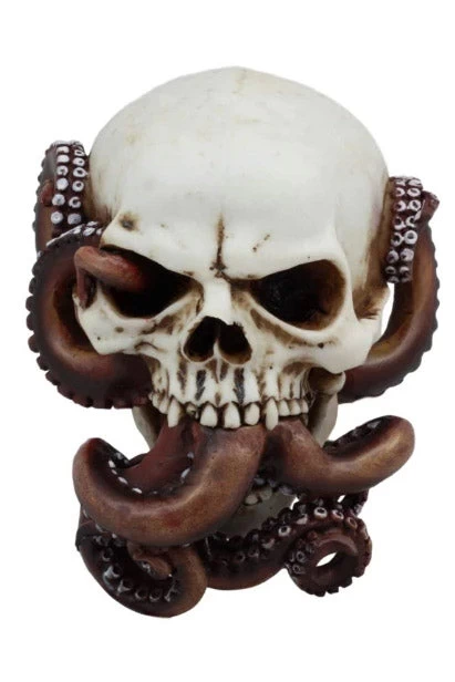 Invoke creatures of the deep with this seasick statue! Designed to look like a realistic skull, this hella haunting statue features a dead man’s skull pierced with textured octopus tentacles! Hand-cast in fine resin to please your heathen soul. Rest this figurine on a shelf, desk, or table to conjure sea monsters in your room!