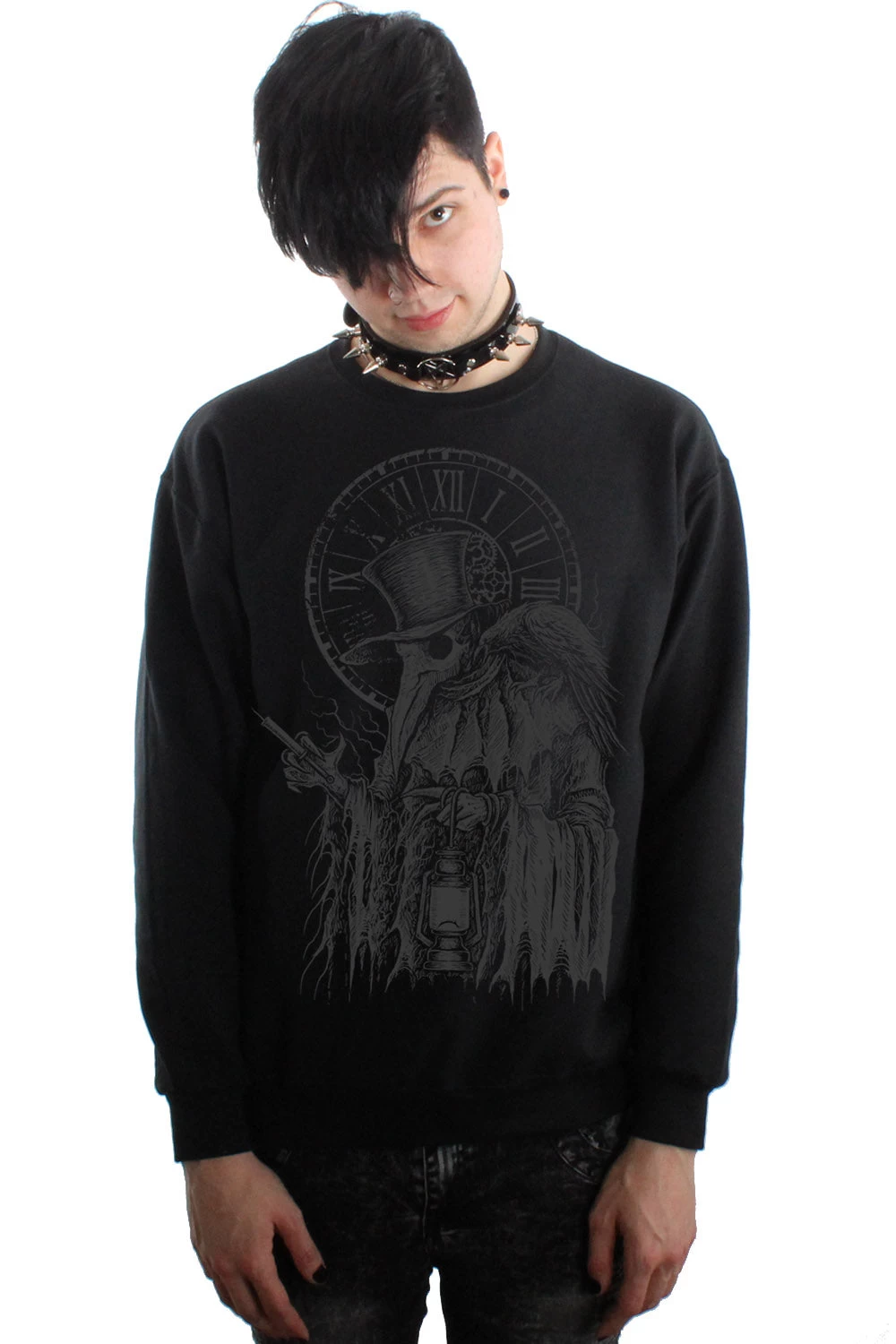 Show the world you survived the Black Plague (cough cough Covid) in this hella heavy metal sweatshirt. Defy death in the cozy cotton construct, possessed with the Plague Doctor holding a diseased syringe in his taloned hand. A raven on his shoulder to symbolize death—a macabre clock because Doctor Death knows your dying day.