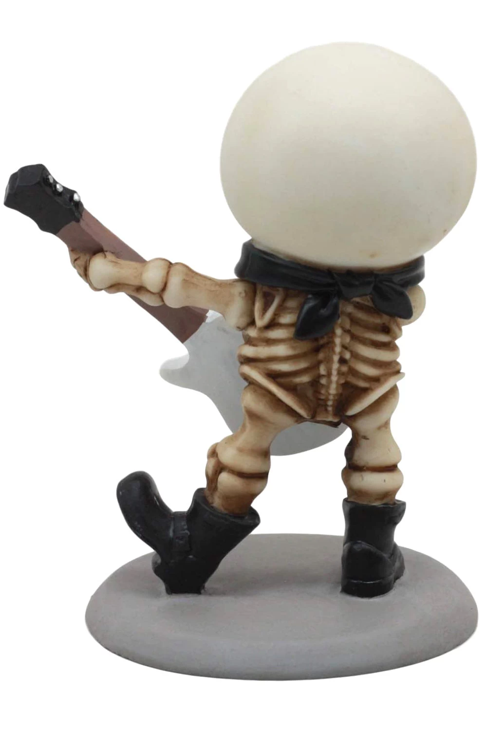 You’ll never stop rocking…. not even when you’re dead! Show your devotion to rock n’ roll with this skeletal soloist who rocked a little too hard. With a skeleton body, stitched mouth, and black bandana around his bony neck, this spooky skeleton’s sure to amp up the ambience in any room!