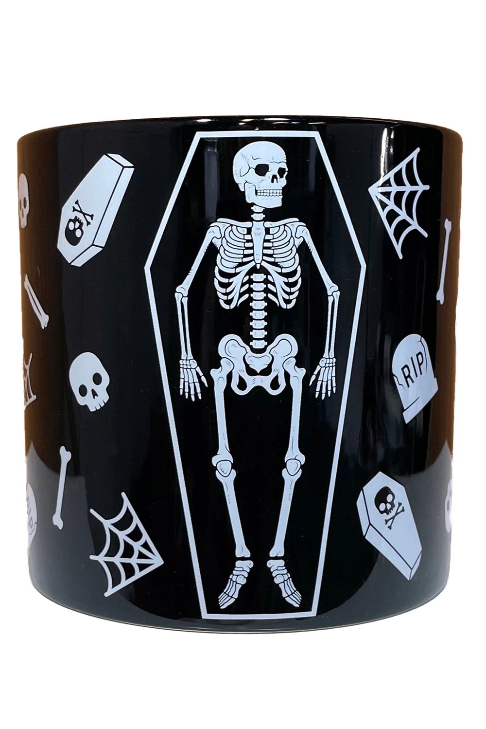 - Features Skulls, Skeleton, Coffins, Webs, Tombstones, Etc.Â