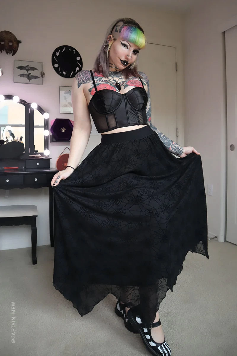 ![Spider Web Mesh Maxi Skirt [with Liner] 8 Spider Web Mesh Maxi Skirt [with Liner] - Image 6](https://www.rebelgothfashion.com/wp-content/uploads/2025/04/Spider-web-mesh-maxi-skirt-with-liner4-600x900copy.webp)