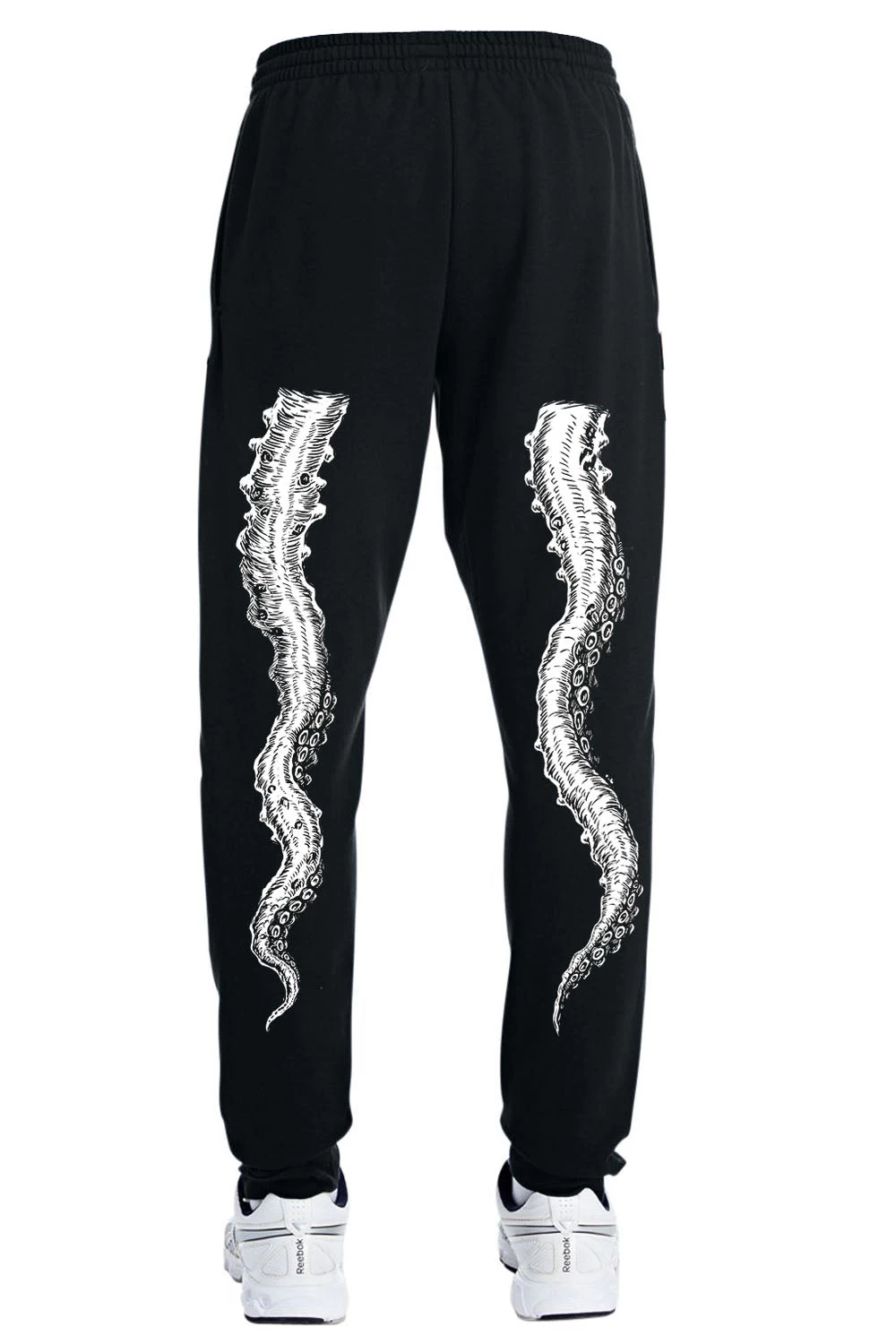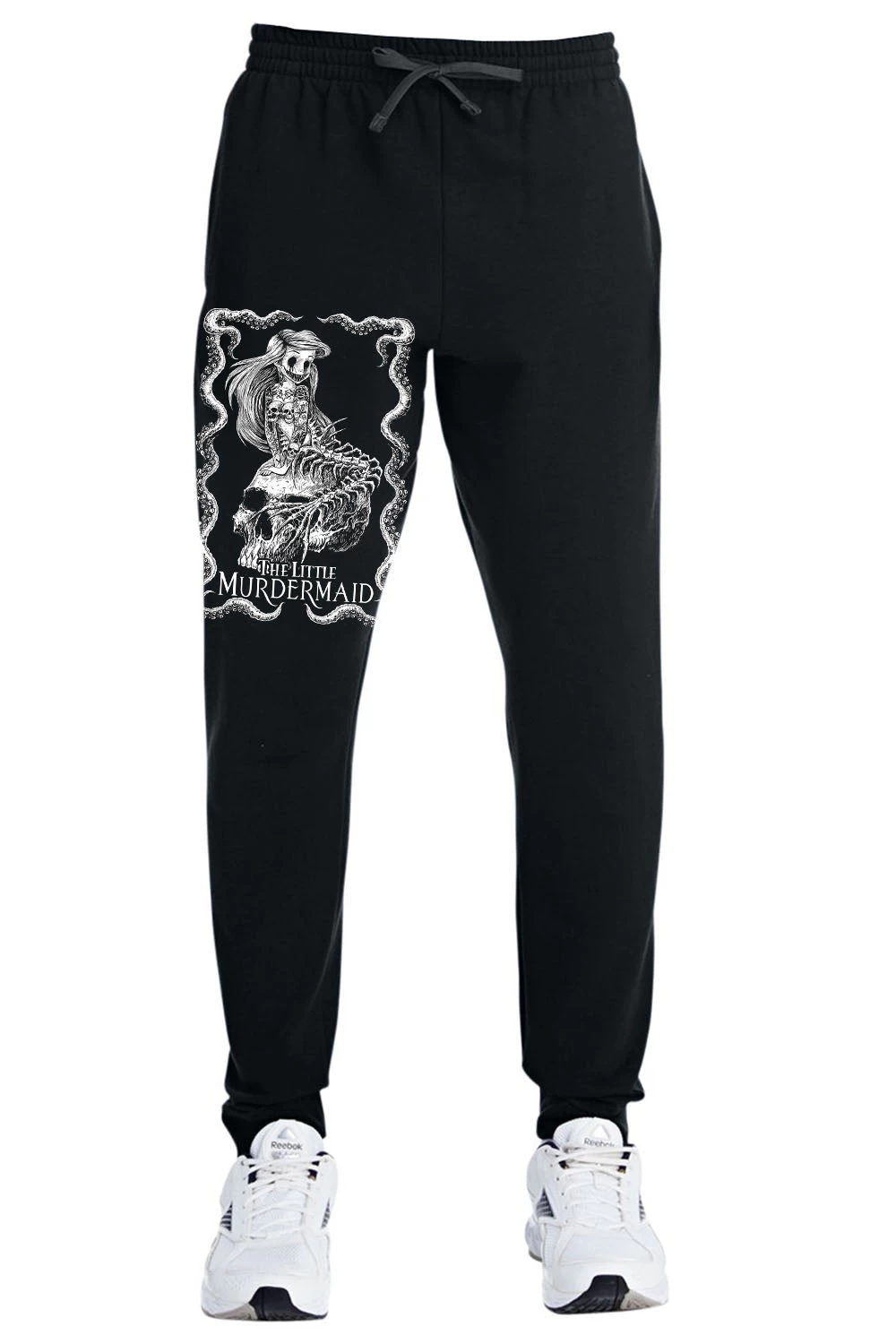 Answer the call of ocean in these seasick joggers! Invoke creatures of the deep in the hella metal design, featuring a tattooed Ariel sitting on a sunken skull in a tentacle frame. Summon scares with her empty demon eyes, spinal bone tail, and razor-shark jaws! Make dark waves with the optional tentacle prints on the back of the pant legs. Finished with stretchy, ribbed ankle cuffs for the sinfully perfect fit. Complete with an elasticated waistband to keep you comfy + creepy.Â