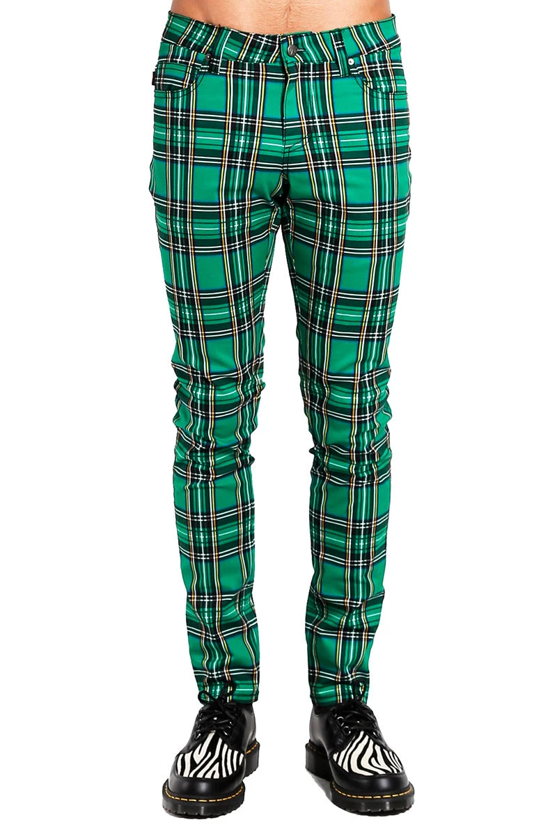 Punk-up your afterlife in these plaid green pants! Conjure chaos in the silver rivets, slimming skinny fit, and stretch cotton construct. Complete with pockets for carrying your smokes, lighter, and tears of your enemies.Â