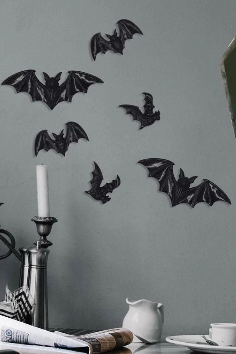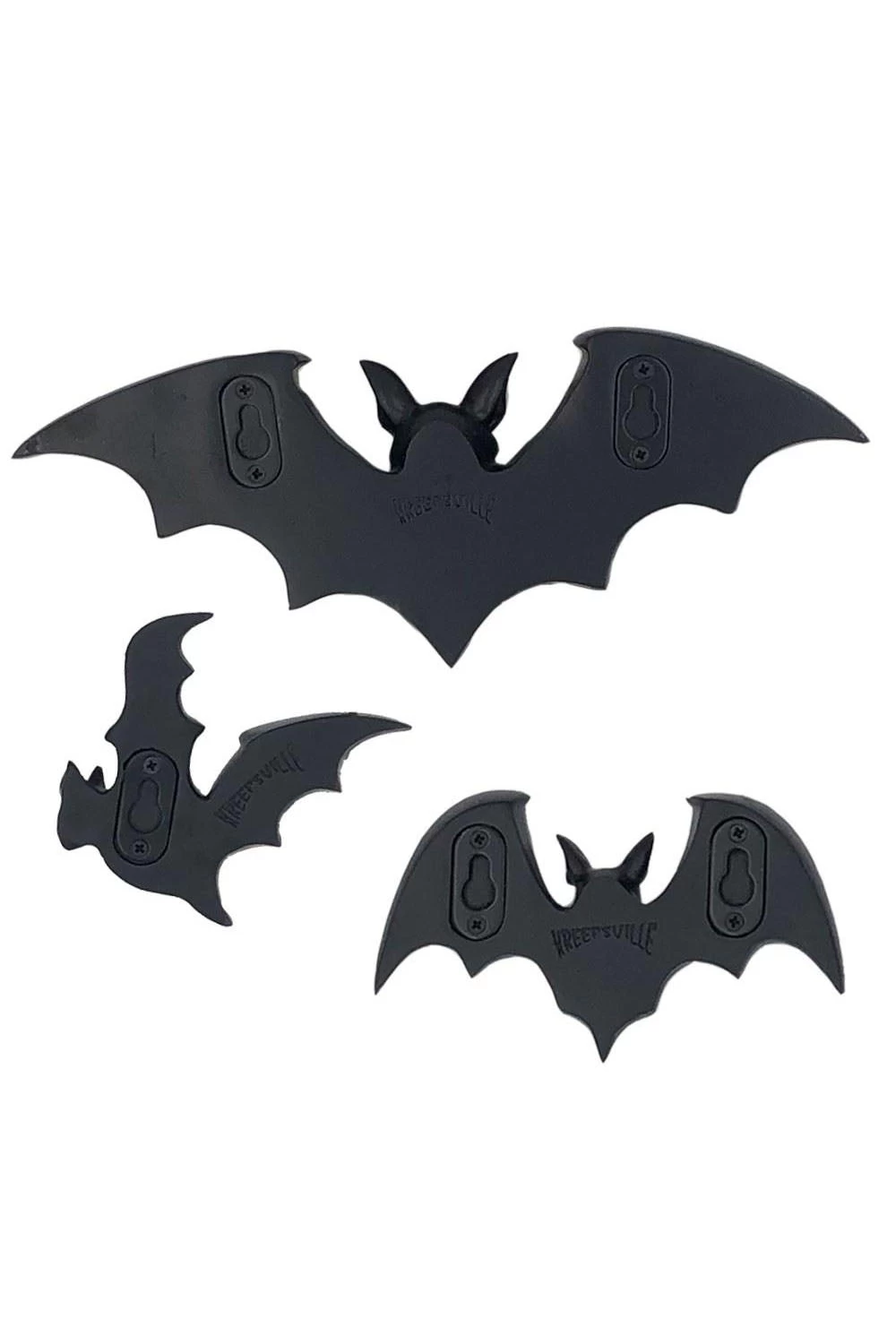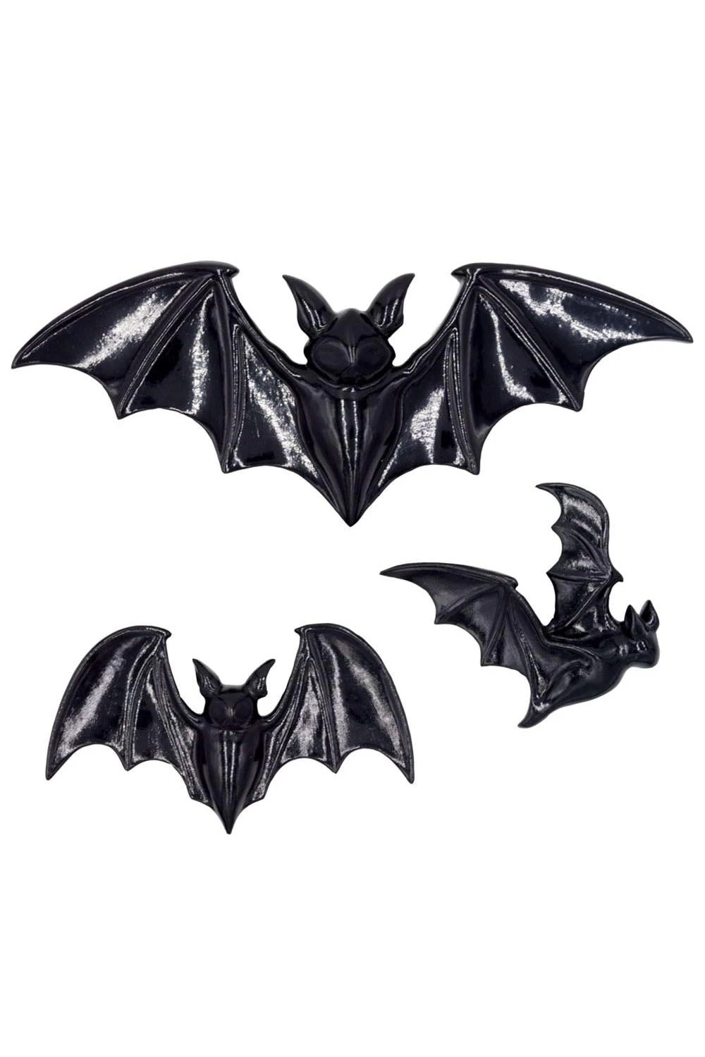 Haunt your home with a cauldron of bats! Mount them any way your dark heart desires—hang them from the holes in the back with nails… or with adhesive tape! Black and shiny, these creepy critters are sure to summon spooks to any room!Â
